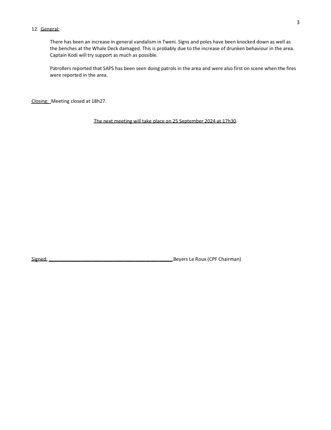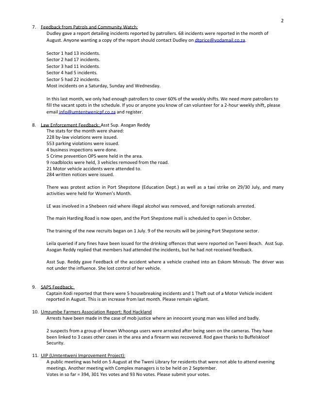 UMTENTWENI CPF Meetings Umtentweni CPF meeting minutes SEPTEMBER 2024 Download Compiled by Dianne Prepok (CPF Secretary)